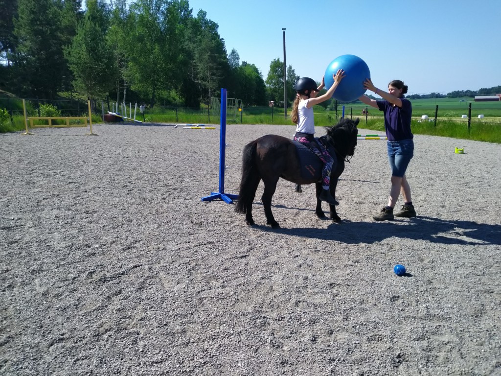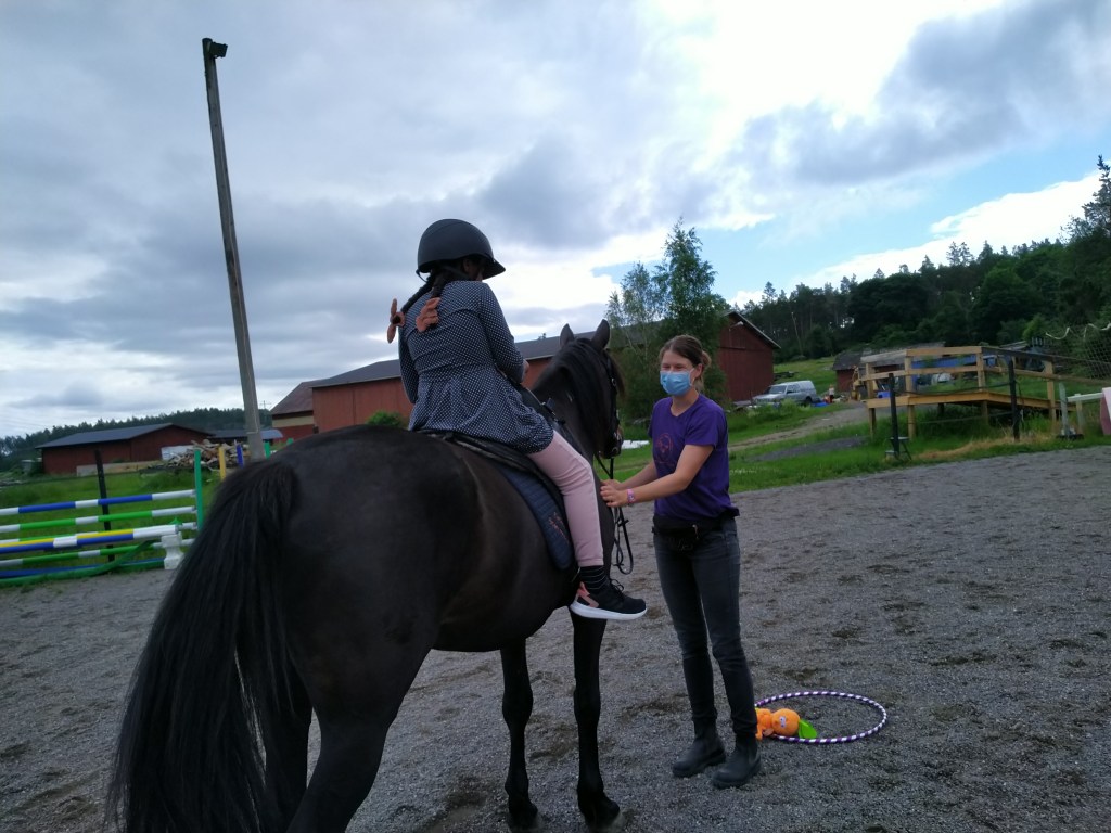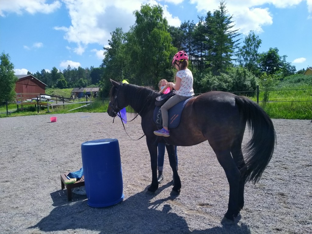 Hästunderstött lärande och ledarskapsutveckling under sommarlägret, avslutande tävling vuxna mot barn med tidtagning.