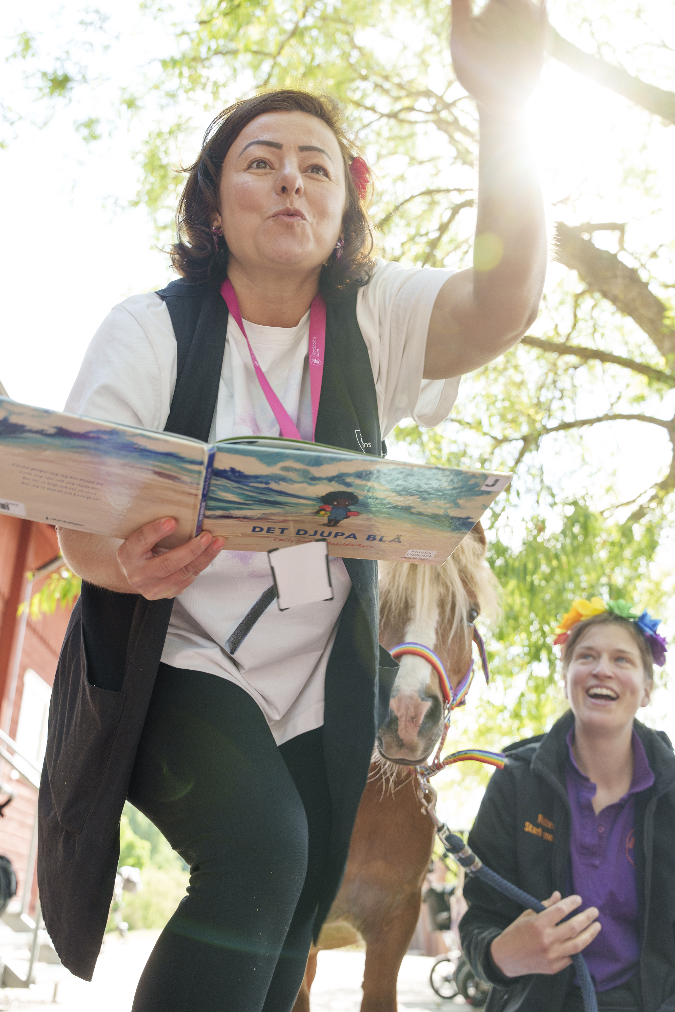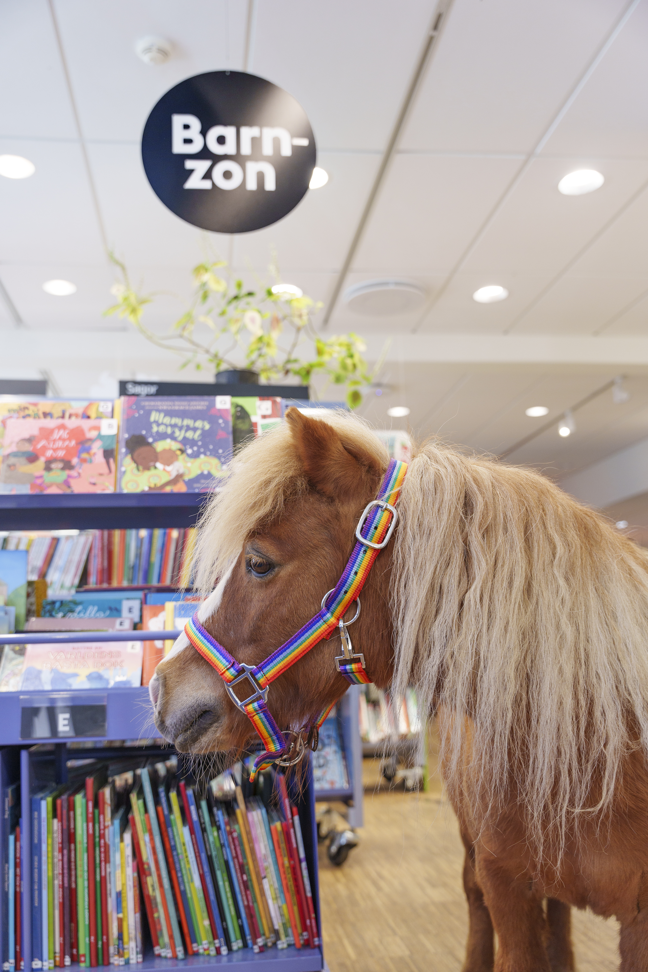 Vad gör en häst på bibliotek? Följ med Läshästen Linus på Husby bibliotek, Stockholm kommun.